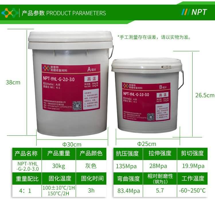 雙組分,以陶瓷顆粒及復合陶瓷顆粒、金屬碳化物為骨材與PDMG預聚體為基礎的耐磨復合材料,具有耐水、耐油、耐酸堿性。適用(-60℃-250℃)設備過流沖蝕、設備的大面積修復、設備預涂耐磨層,如旋流器、浮選柱、浮選機、泡沫槽、分級機、攪拌桶、溜槽、管件類、泵類等修復(典型用途見主要物理機械性能表)。