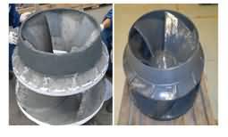 雙組分,以特種金屬碳化物、納米復合超硬顆粒為骨材、DNI-PDMG預聚體為基礎的耐磨復合材料,具有超強耐磨性、柔韌性、耐水、耐油、耐酸堿性。適用(-60℃-250℃)惡略環境中設備過流沖蝕(顆粒大于50mm)、設備的局部修復、設備預涂耐磨層,如旋流器、浮選柱、浮選機、泡沫槽、分級機、攪拌桶、溜槽、管件類、渣漿泵、脫硫泵、污水泵、往復泵、隔膜泵等泵類修復(典型用途見主要物理機械性能表)。