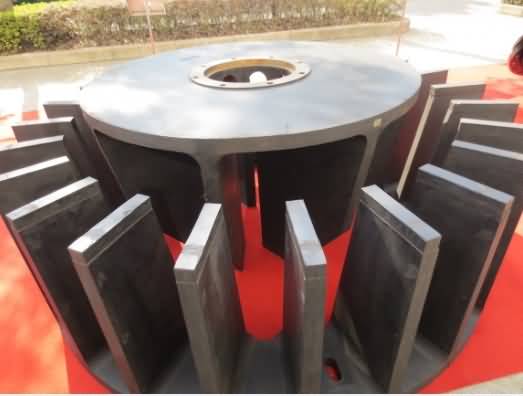 在轉(zhuǎn)子—定子系統(tǒng)中,轉(zhuǎn)子設計是決定浮選機工藝性能的主要方面。然而,定子的作用不可輕視。離心葉輪的外圍均設置定子。棒條葉輪的外圍大多也有定子,僅傘狀輪用槽底穩(wěn)流板代替定子。環(huán)射式葉輪亦需與穩(wěn)流板配合使用。穩(wěn)流板上的弧形的垂直葉片引導漿氣混合物均勻地上升,即,將切向速度最大限度地轉(zhuǎn)變?yōu)閺较蛩俣戎笤俎D(zhuǎn)折向上,否則將出現(xiàn)液面旋轉(zhuǎn)和波浪。通常定子由固定在葉輪蓋板上的導向葉片和在浮選機槽底安裝的徑向葉片所組成,這兩類葉片亦稱為擴散片。定子的作用和穩(wěn)流板一樣,主要是消除礦漿自旋,以保證液面平穩(wěn)。當葉輪甩出的礦漿與定子葉片撞擊時,產(chǎn)生新的漩渦。有利于卷吸(分割)空氣和氣泡分裂。因此,定子設計的優(yōu)劣,會影響泡沫層穩(wěn)定性和充氣量。
