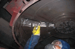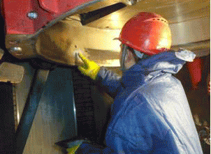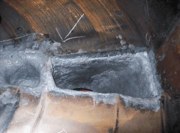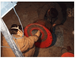 做好施工前的準備工作:如工具、材料等。同時清理干凈散落在設備和地面上的煤粉。如果出料口等部位有局部穿孔,要先用3-5mm厚鋼板錘出相應弧度補焊穿孔。表面處理:用角磨機打磨或   噴砂處理去除磨損部位表面的氧化層和松動物質,露出金屬原色。用干凈棉紗和無水乙醇清洗至沒有雜質痕跡。