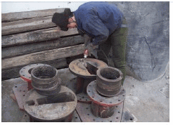水泥窯的窯頭、窯尾煤粉轉子秤在工作過程中進料口部位承受著嚴重的沖刷磨損過程,進料口、殼體磨損嚴重,此問題如不及時解決,對設備安全及生產都會造成嚴重后果。傳統的焊接修復效果并不理想,并且增加了工人工作量、浪費了企業資金、嚴重影響企業的綜合效益。