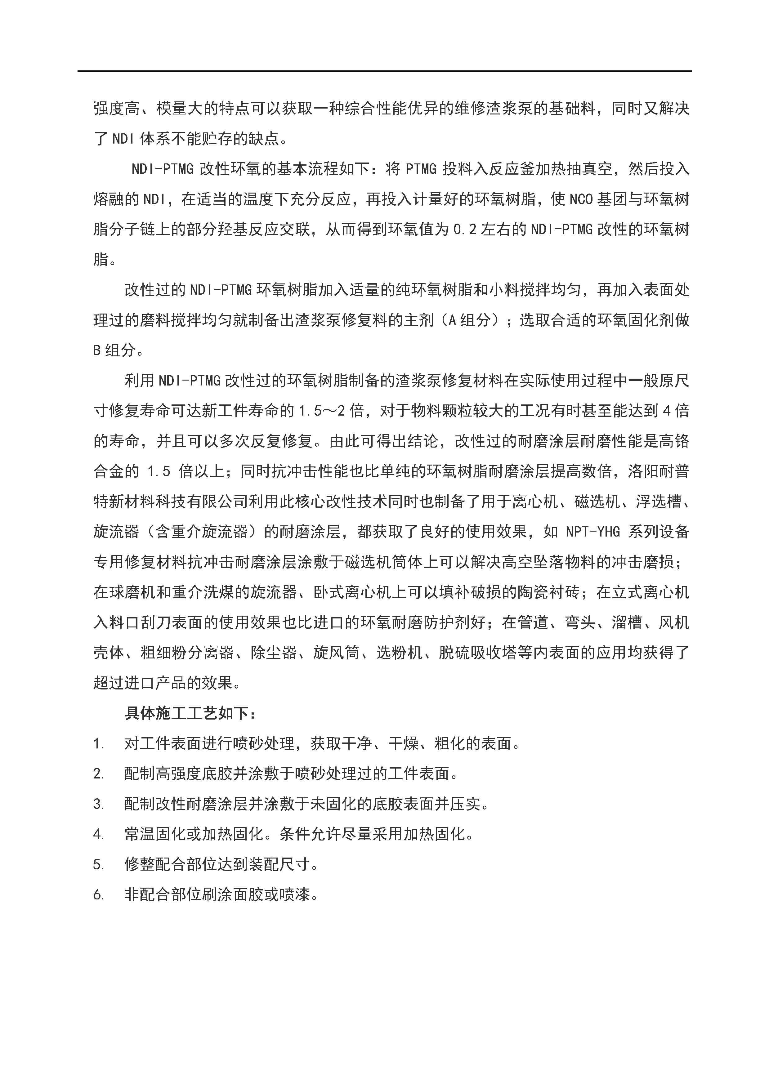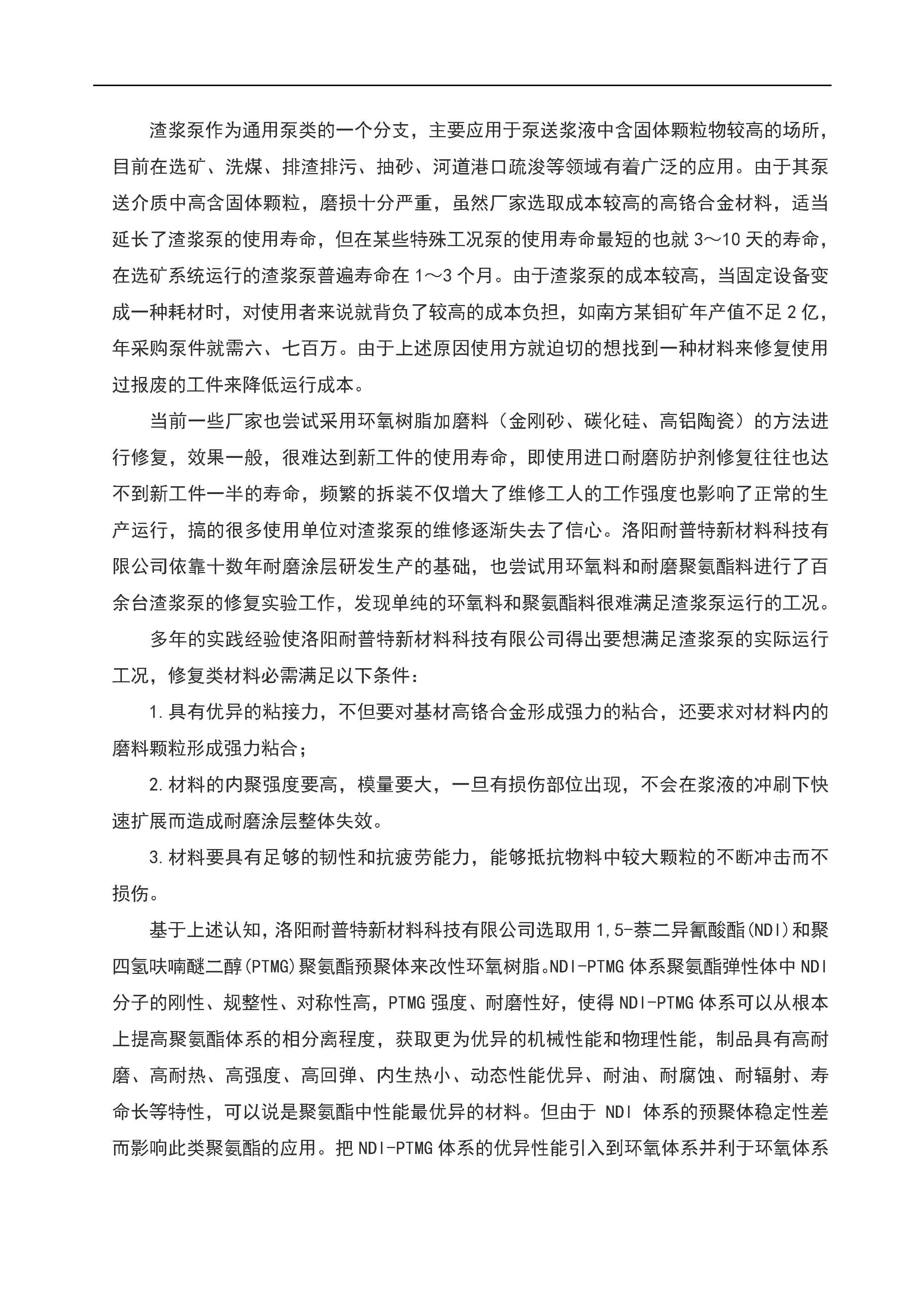 渣漿泵修復材料及渣漿泵修復涂層探討
