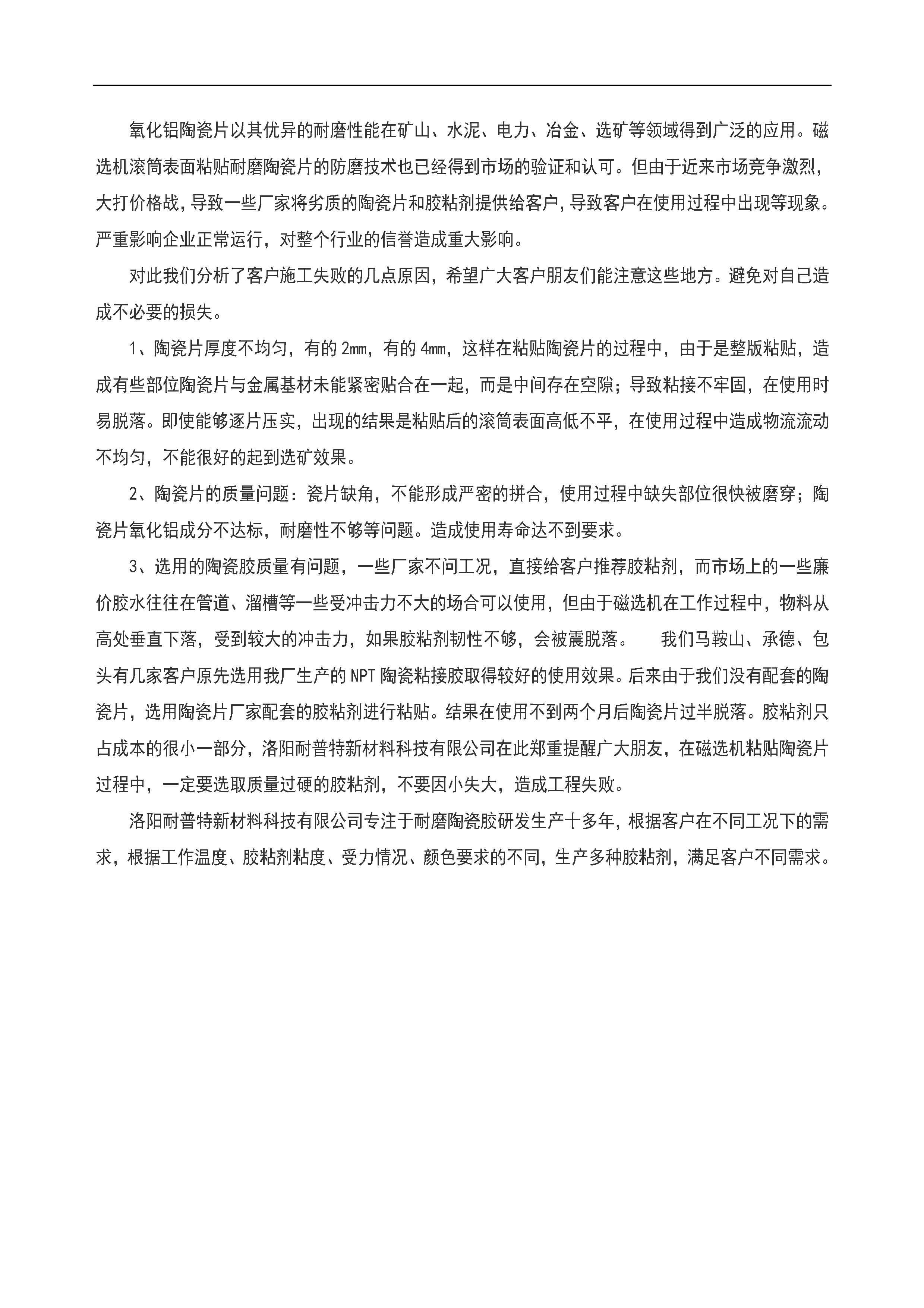 磁選機滾筒表面粘貼耐磨陶瓷片脫落的幾點原因及解決辦法