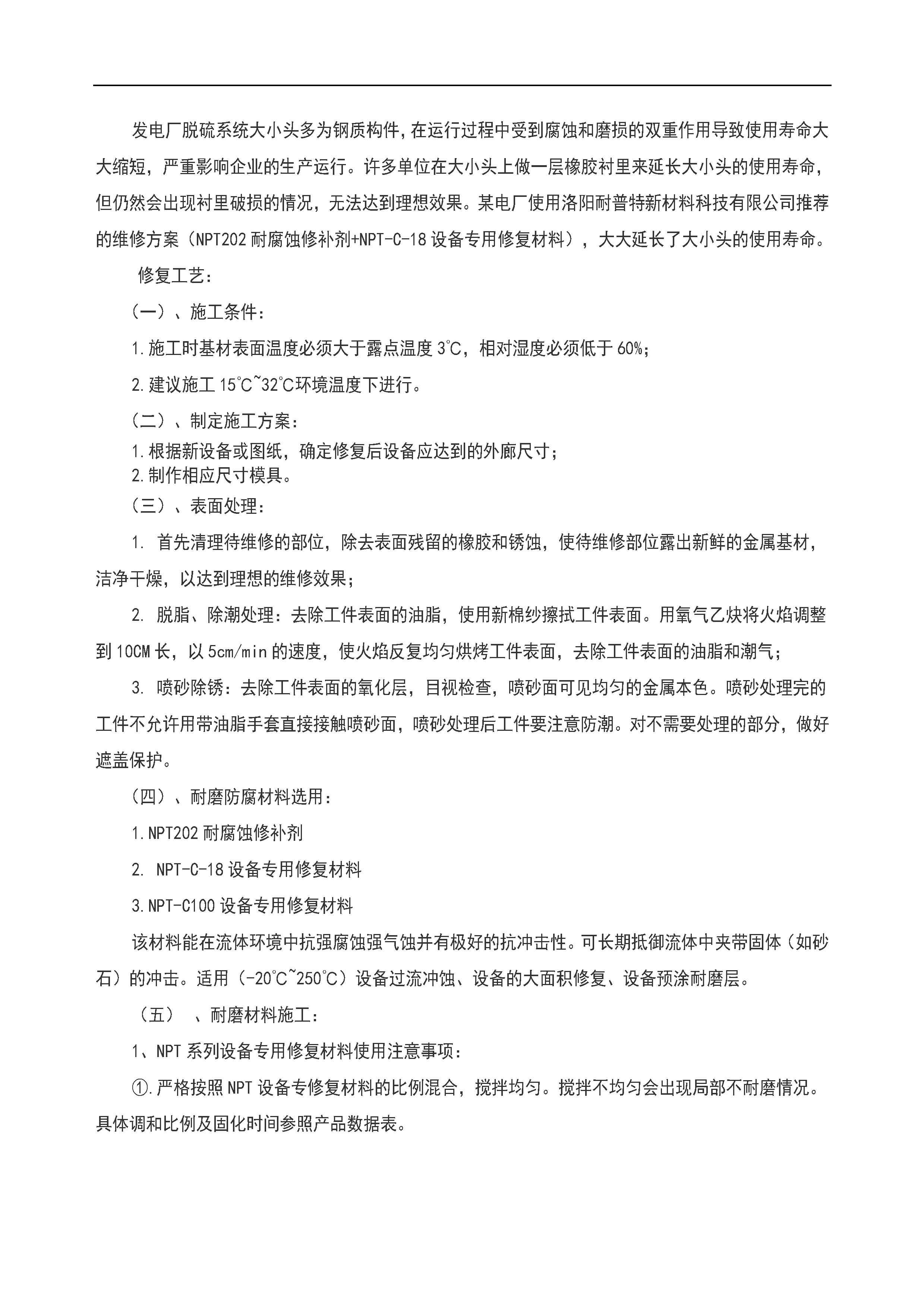 發(fā)電廠脫硫系統(tǒng)大小頭耐磨維修