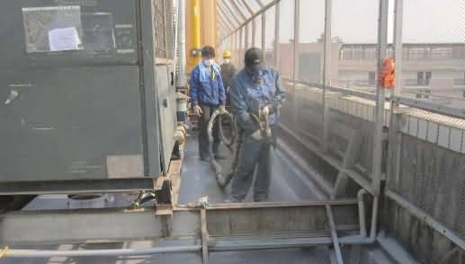 噴涂作業時,操作員手持噴槍噴涂施工,噴槍宜垂直于待噴底層,距離適中,移動速度均勻;噴涂次序為先難后易、先上后下,縱橫穿插噴涂至規劃要求的厚度,應接連作業,一般人工噴涂2遍能到達1.5厚。噴涂作業時,如發現異常情況,應立即中止作業,查看并排除故障后方可持續施工。