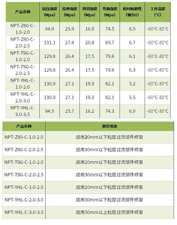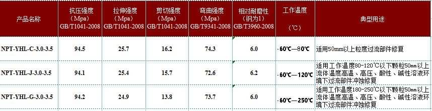 雙組分,以陶瓷顆粒及復(fù)合陶瓷顆粒、金屬碳化物為骨材與PDMG預(yù)聚體為基礎(chǔ)的耐磨復(fù)合材料,具有耐水、耐油、耐酸堿性。適用(-60℃-80℃)設(shè)備過(guò)流沖蝕、設(shè)備的大面積修復(fù)、設(shè)備預(yù)涂耐磨層,如旋流器、浮選柱、浮選機(jī)、泡沫槽、分級(jí)機(jī)、攪拌桶、溜槽、管件類、泵類等修復(fù)(典型用途見(jiàn)主要物理機(jī)械性能表)。