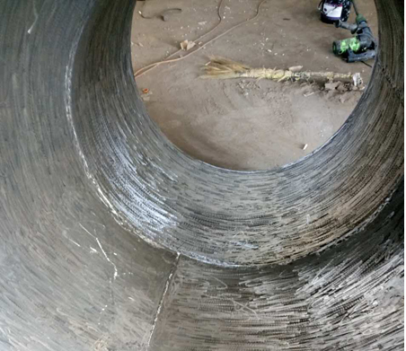1、表面處理:清理襯涂層破損部位的殘余并對(duì)待修補(bǔ)部位進(jìn)行除銹和粗化處理,再用清洗劑(丙酮、乙酸乙酯等)進(jìn)行清洗并晾置干燥;