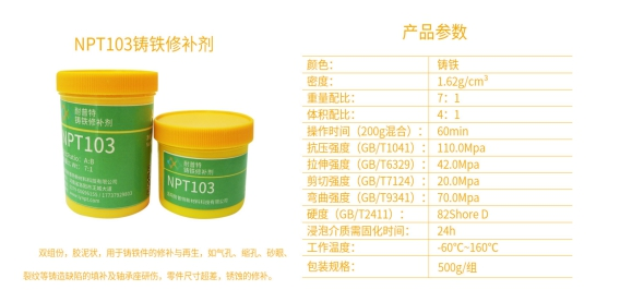 鑄鐵缺陷修補(bǔ)劑是通用型鑄造缺陷修補(bǔ)膠,與機(jī)體結(jié)合強(qiáng)度高,固化后硬度高、無收縮,可進(jìn)行各類機(jī)械加工,具有耐磨損、耐老化、耐油、防水、抗腐蝕、耐高溫的性能。