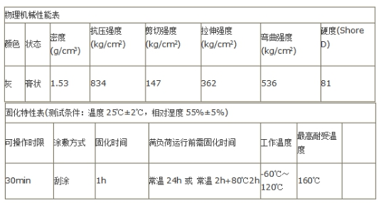 主要用于缺陷大于2mm的箱體裂紋、鑄造氣孔、砂眼、縮孔的填補(bǔ)、管件漏油、水汽的密封,可在低溫情況下施工。