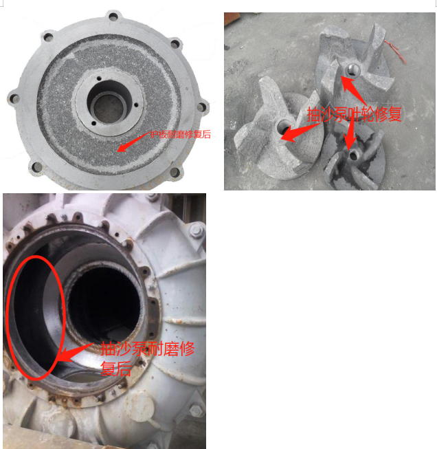 1.先預熱已噴砂的設備,將NPT-G-6-8耐磨防腐修復劑A、B組分按4:1(重量)比例混合攪拌均勻,用批刀或塑料刮板將混合后的耐磨防腐修復劑涂覆于設備磨損部位。