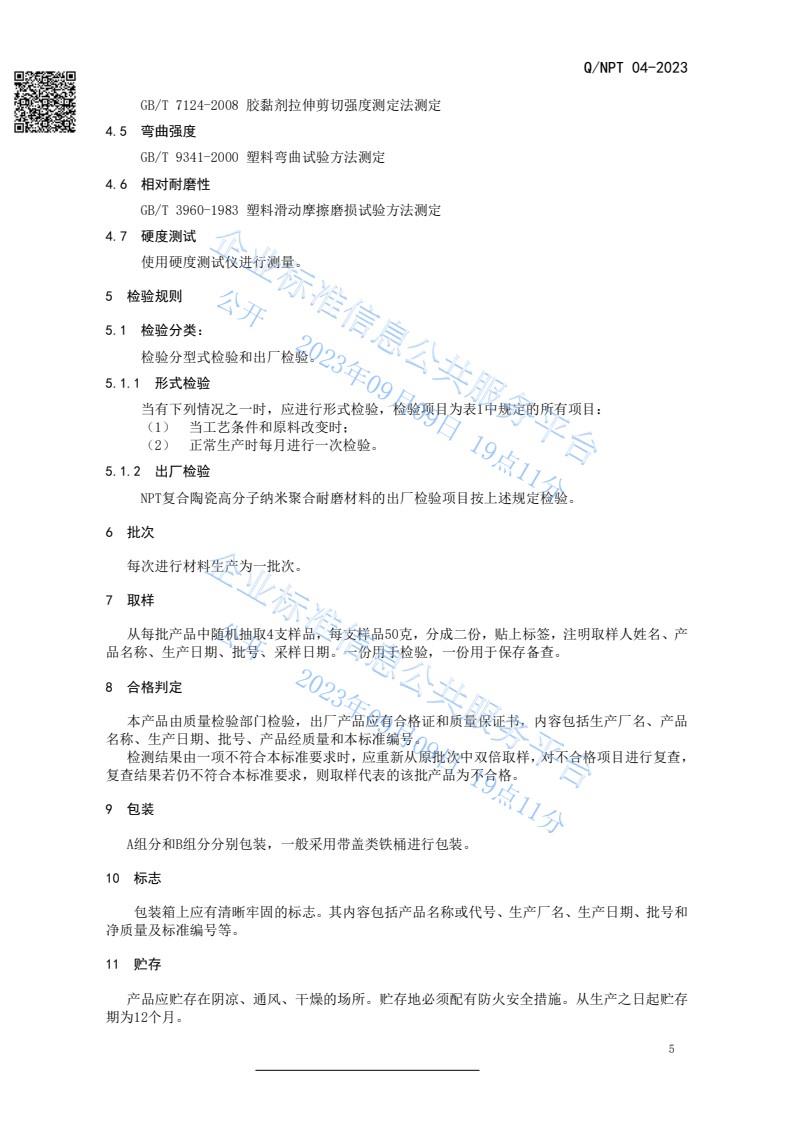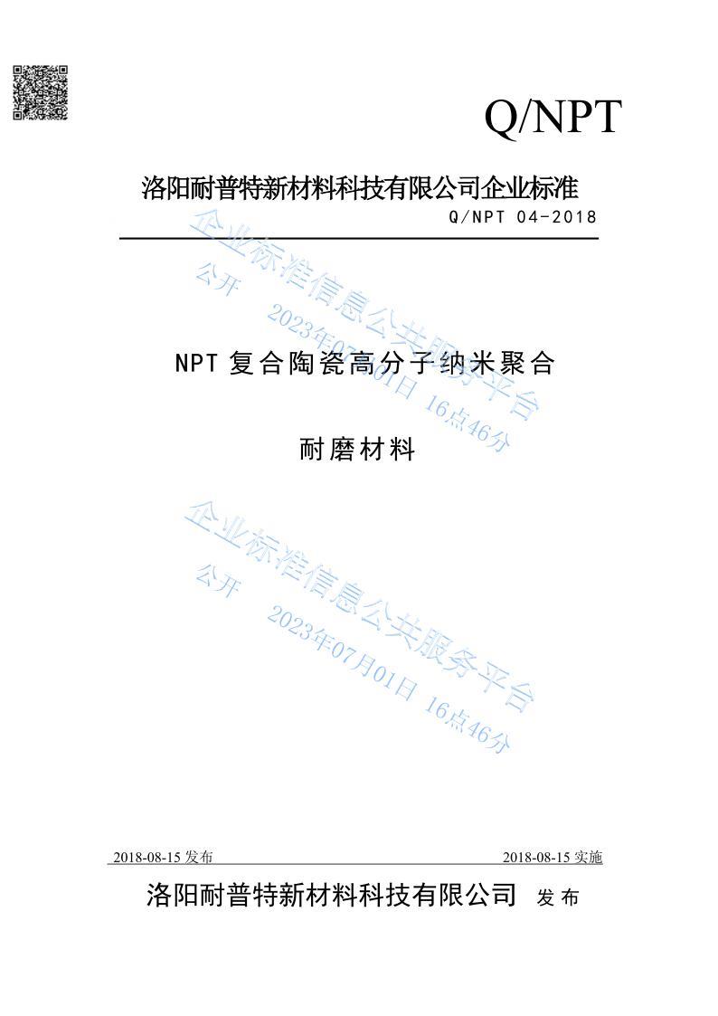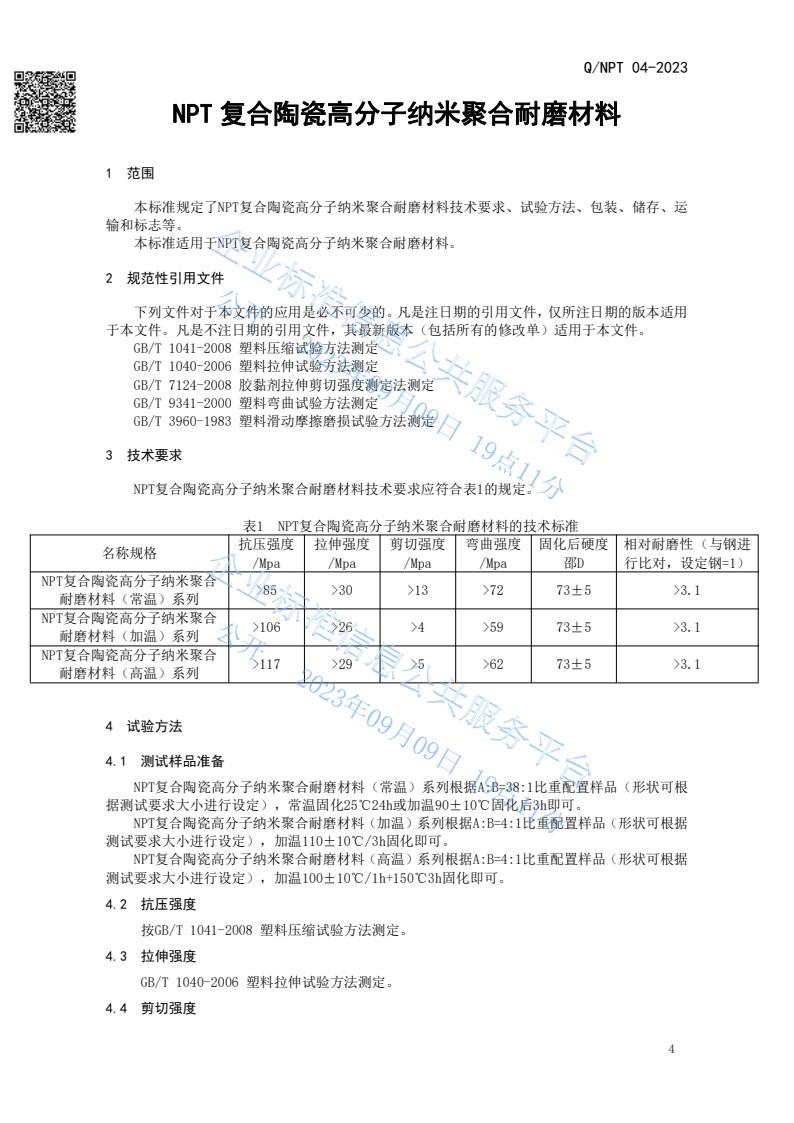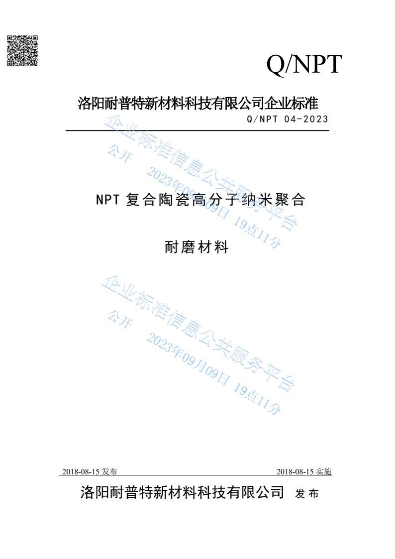 NPT復合陶瓷高分子納米聚合耐磨材料企業標準