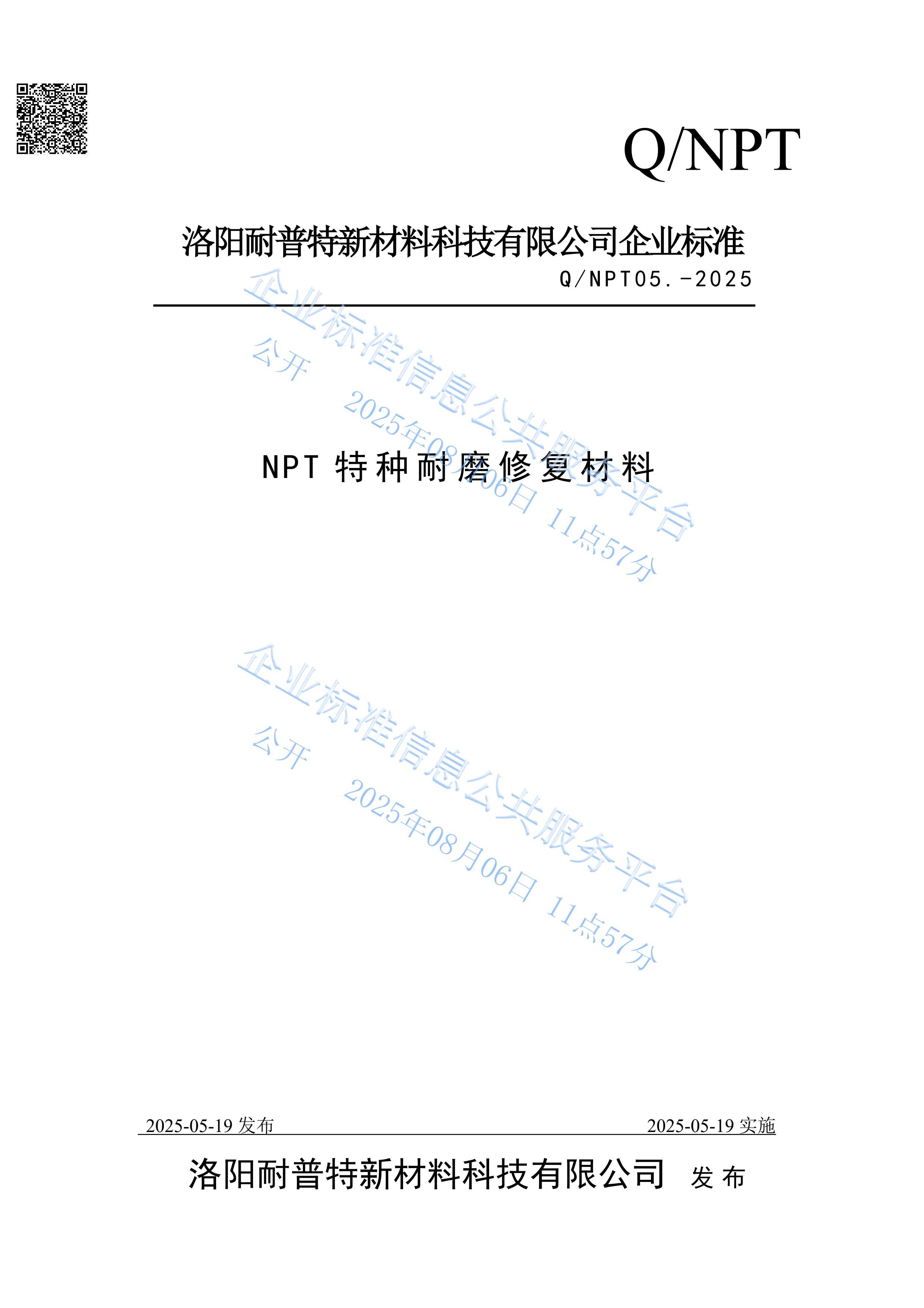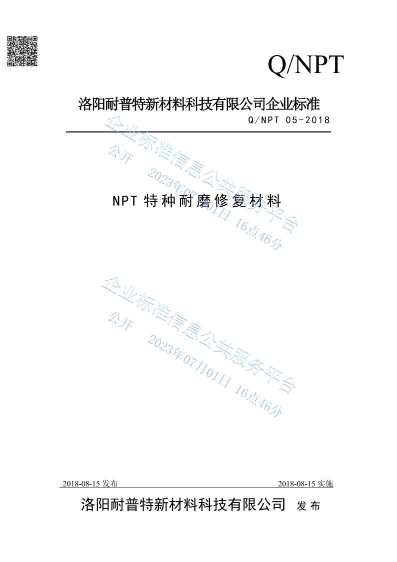 NPT特種耐磨修復(fù)材料企業(yè)發(fā)布標(biāo)準(zhǔn)