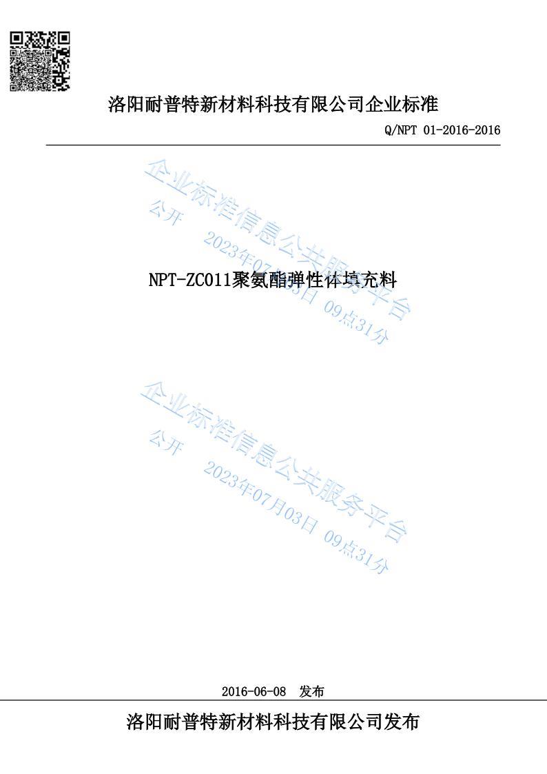 NPT-ZC011聚氨酯彈性體填充料企業標準