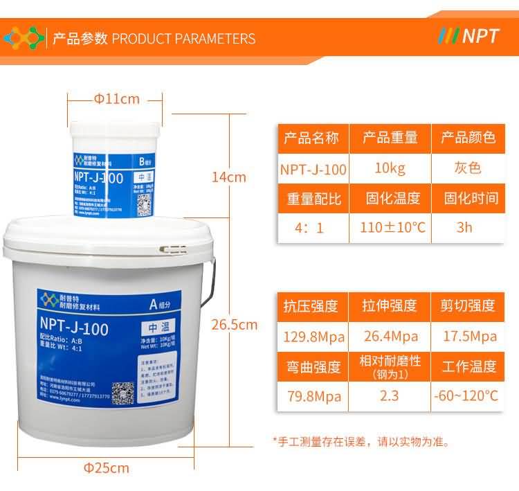 雙組分,以陶瓷、金屬碳化物、微型顆粒為骨材的耐磨復合材料,具有耐水、耐油、耐酸堿性。適用(-60℃-250℃)設備過流沖蝕、設備的大面積修復、設備預涂耐磨層,如旋流器、浮選柱、浮選機、泡沫槽、分級機、攪拌桶、溜槽、管件類、泵類等修復(典型用途見主要物理機械性能表)。