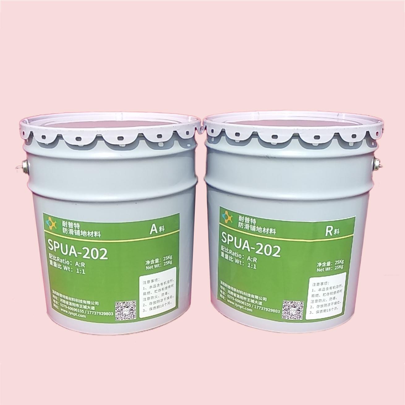 NPT-SPUA-202防滑鋪地材料是由半預聚體、端氨基聚醚、胺擴鏈劑等原料現場噴涂成型的第三代聚脲彈性體。該技術將新材料、新設備和新工藝有機地結合在一起,是傳統施工技術的一次革命性飛躍,是目前國際上先進的施工技術之一。