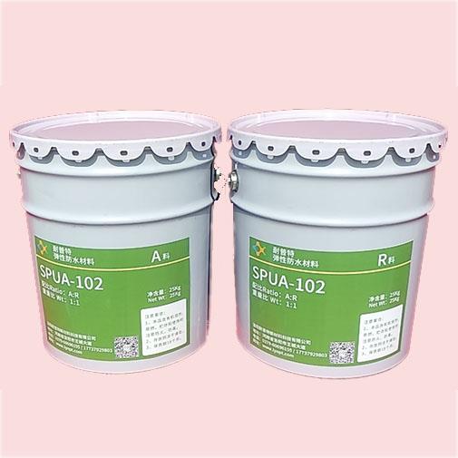 NPT-SPUA-102彈性防水材料是由半預聚體、端氨基聚醚、胺擴鏈劑等原料現場噴涂成型的第三代聚脲彈性體。該技術將新材料、新設備和新工藝有機地結合在一起,是傳統施工技術的一次革命性飛躍,是目前國際上先進的施工技術之一。