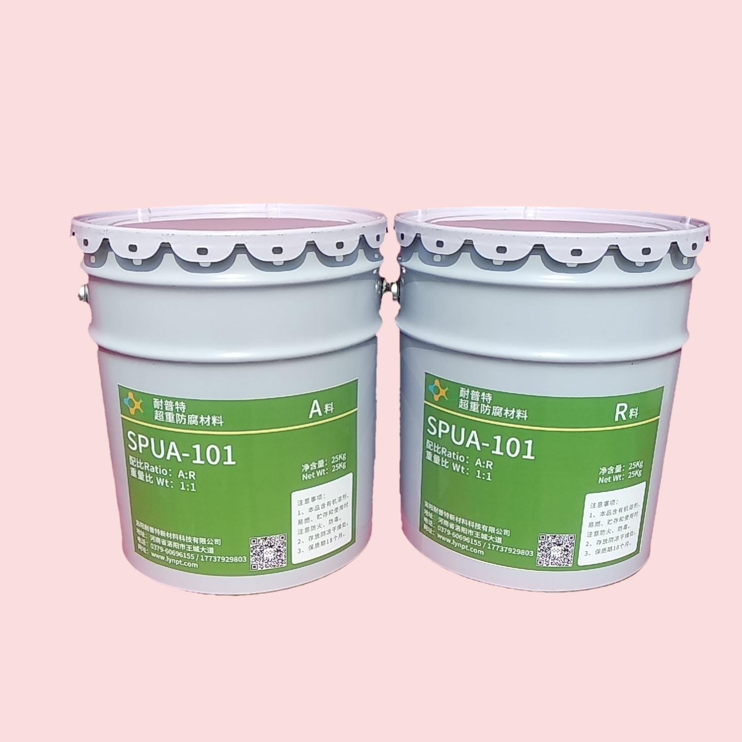 NPT-SPUA-101超重防腐材料是由半預聚體、端氨基聚醚、胺擴鏈劑等原料現場噴涂成型的第三代聚脲彈性體。該技術將新材料、新設備和新工藝有機地結合在一起,是傳統施工技術的一次革命性飛躍,是目前國際上最先進的施工技術之一。